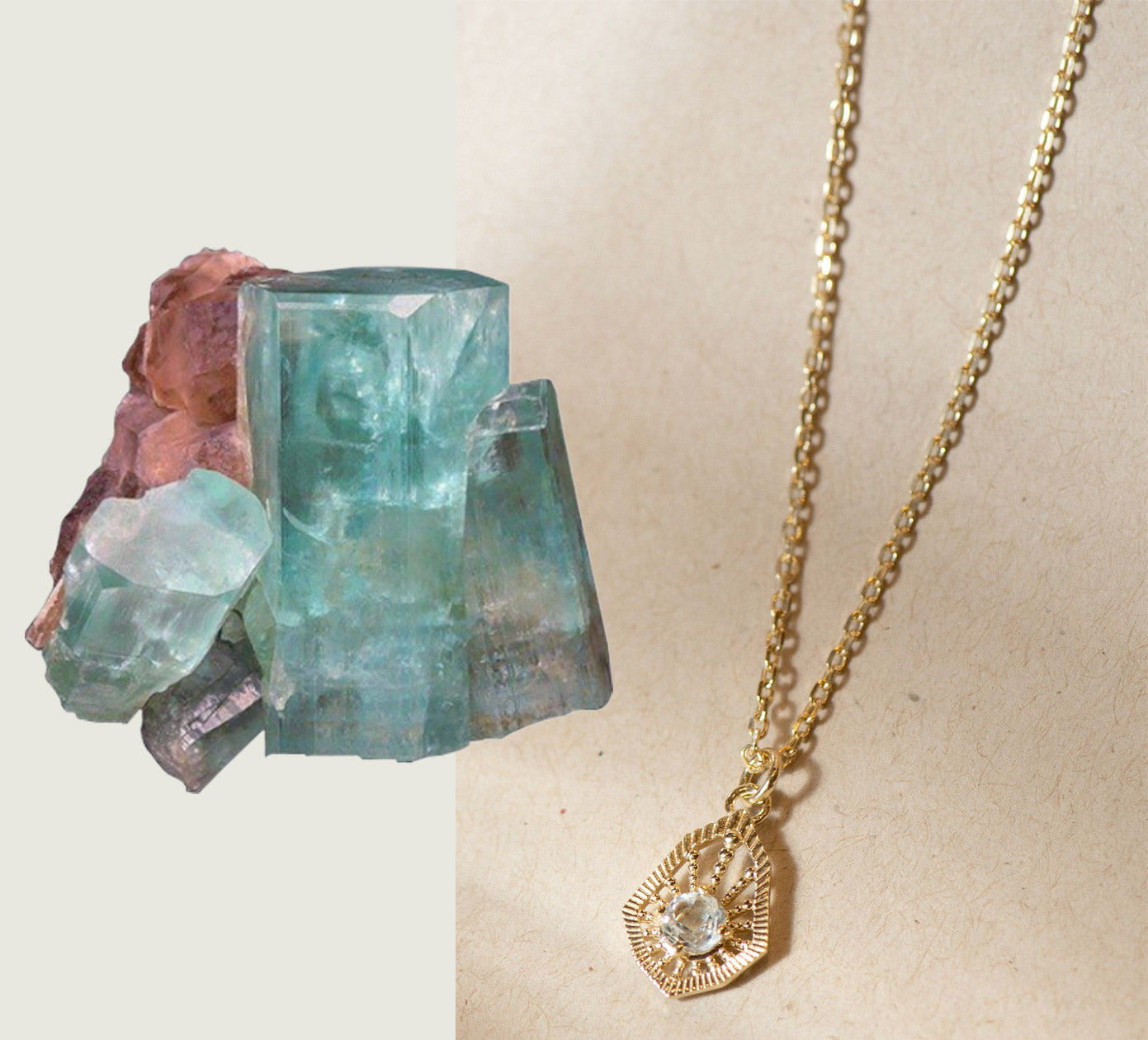 At Zoë & Morgan, we source our Aquamarine from Pakistan, mined at high elevations in Pakistan’s Karakoram Mountains. One of our favourite stones, the Aquamarine has a MOHS scale level of 7.5-8, making it a durable stone, perfect for jewellery.