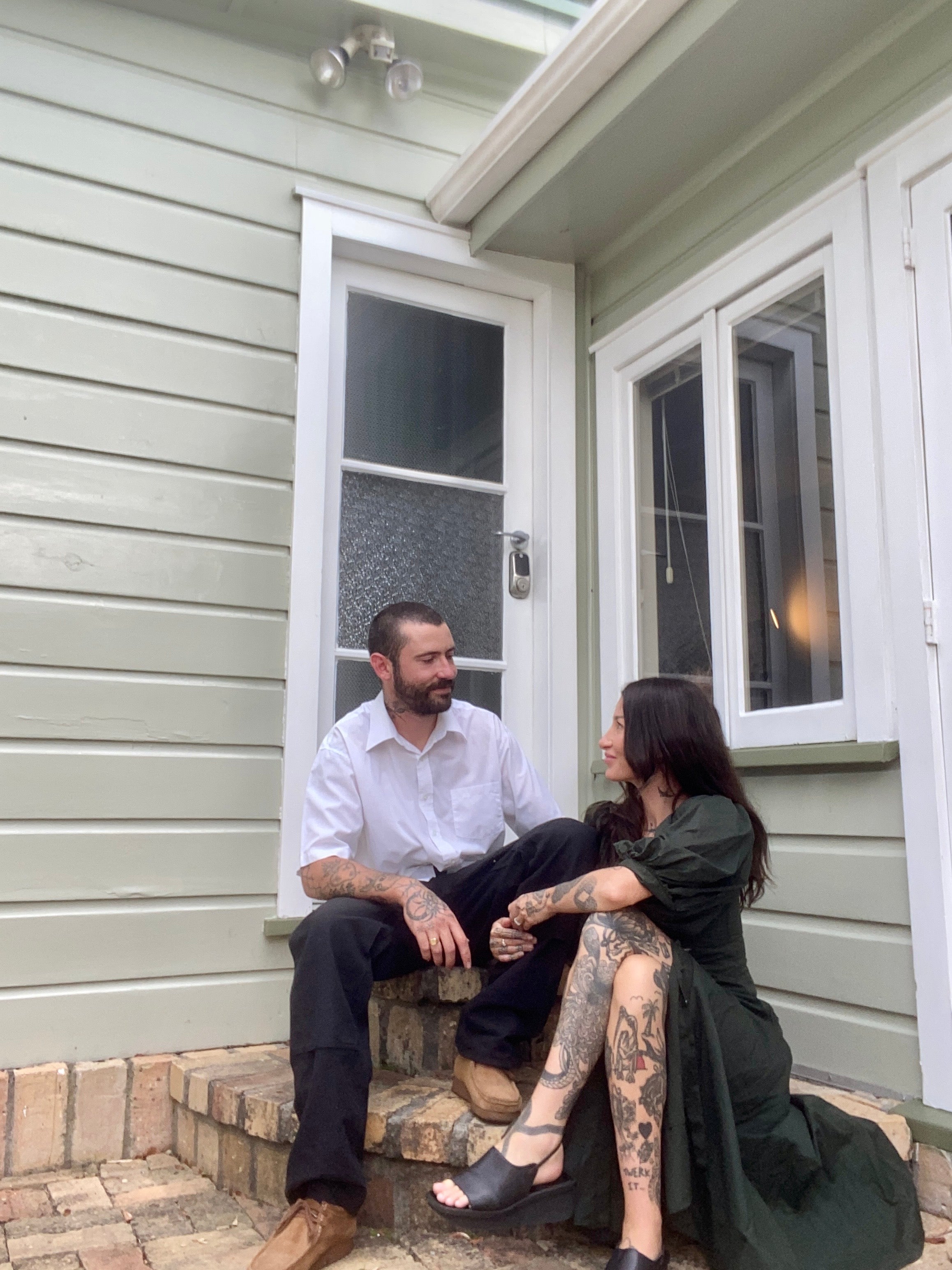 Jay: I was on my first guest spot at Two Hands Tattoo, up from Raglan and very nervous to be working at such a renowned shop. A close friend of mine introduced me to Jimmy; I remember being so swept away by her infectious personality and being so in awe of her. I instantly felt so connected to her and so at home, while being so out of my comfort zone. A few years later we went on a date and never stopped! It always makes me smile whenever I think of it.